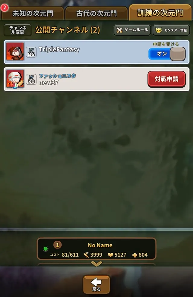 同じチャンネルのユーザーと自由に対戦できます。