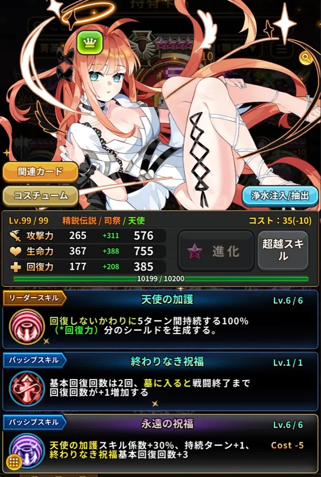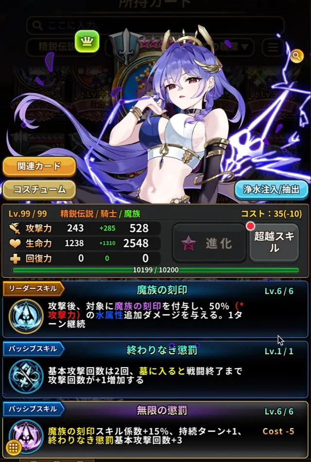このスクリーンショットは、カード重複+10、超越星6、超越レベル99、専用超越スキル獲得の基準でカード図鑑 > 保有カードにて撮影されました。