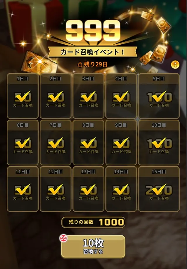 カード召喚回数: 既存の500回 → 1000回に変更