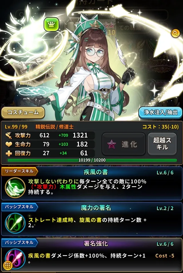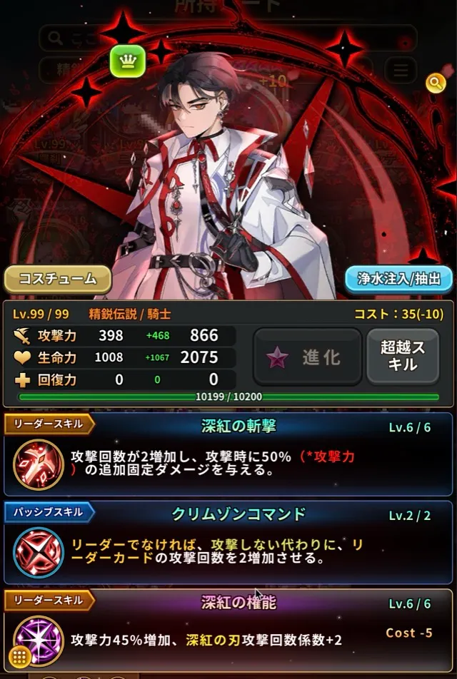 このスクリーンショットは、カード重複+10、超越星6、超越レベル99、専用超越スキル獲得の基準でカード図鑑 > 保有カードにて撮影されました。