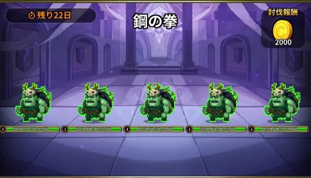一定段階まで登場するモンスターを討伐するたびに、すべてのギルドメンバーが討伐報酬を獲得できます。