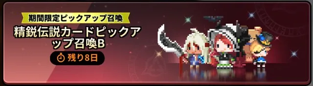 次のピックアップ精鋭伝説カードは、保有していないピックアップ精鋭伝説カードの中のいずれかが確定となります。