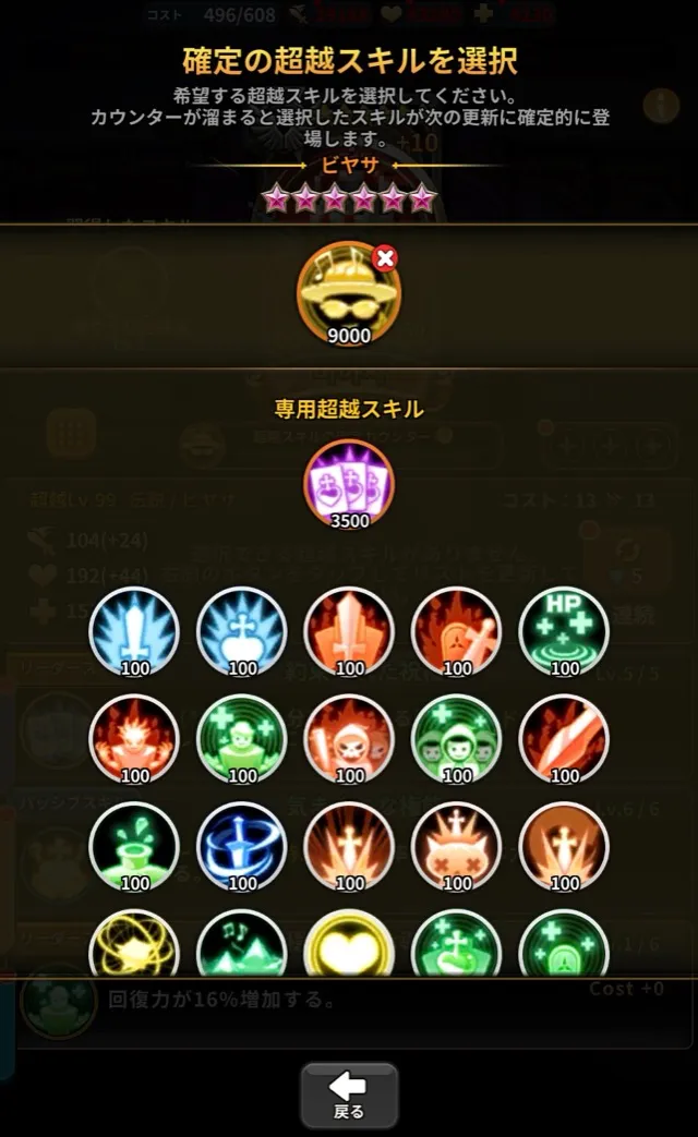選択した超越スキルがあり、ポイントが 9000 に到達した状態であれば、