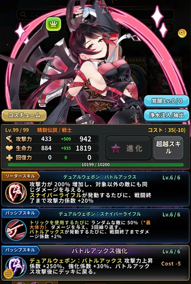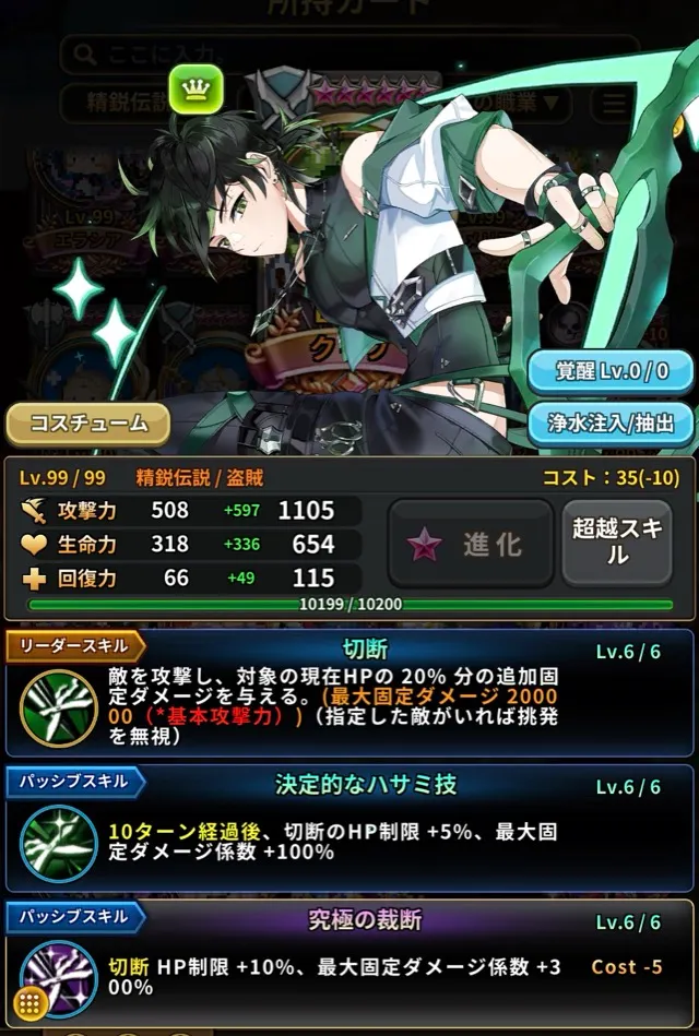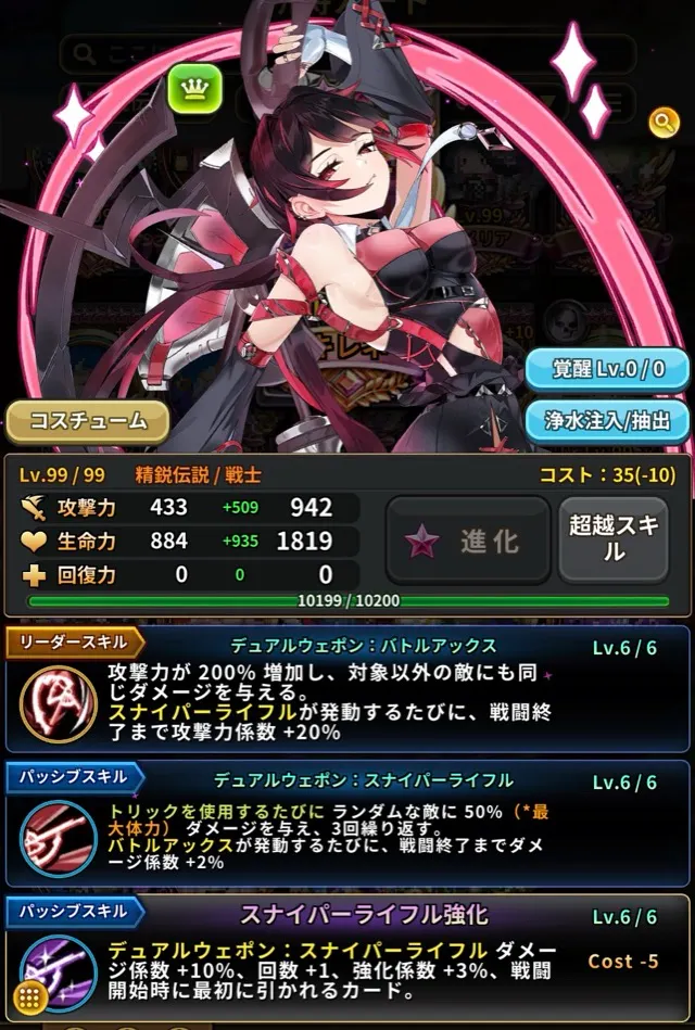 このスクリーンショットは、カード重複+10、超越星6、超越レベル99、専用超越スキル獲得の基準でカード図鑑 > 保有カードにて撮影されました。